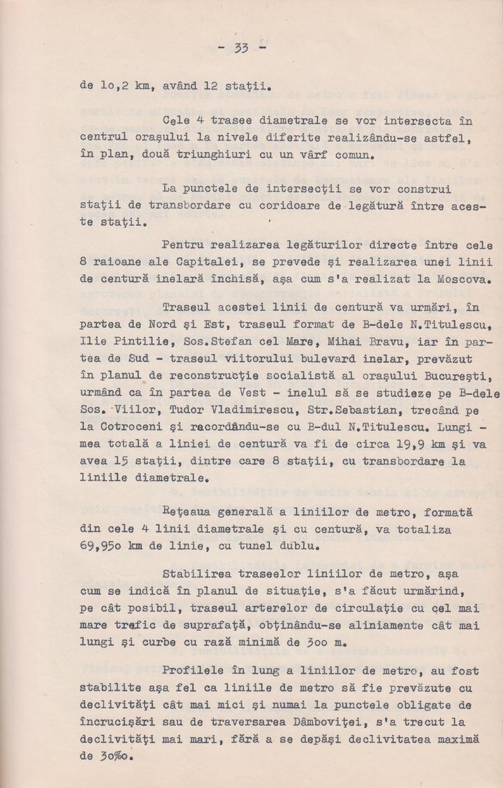Memoriul Tehnico-Economic asupra constructiei metroului in orasul Bucuresti