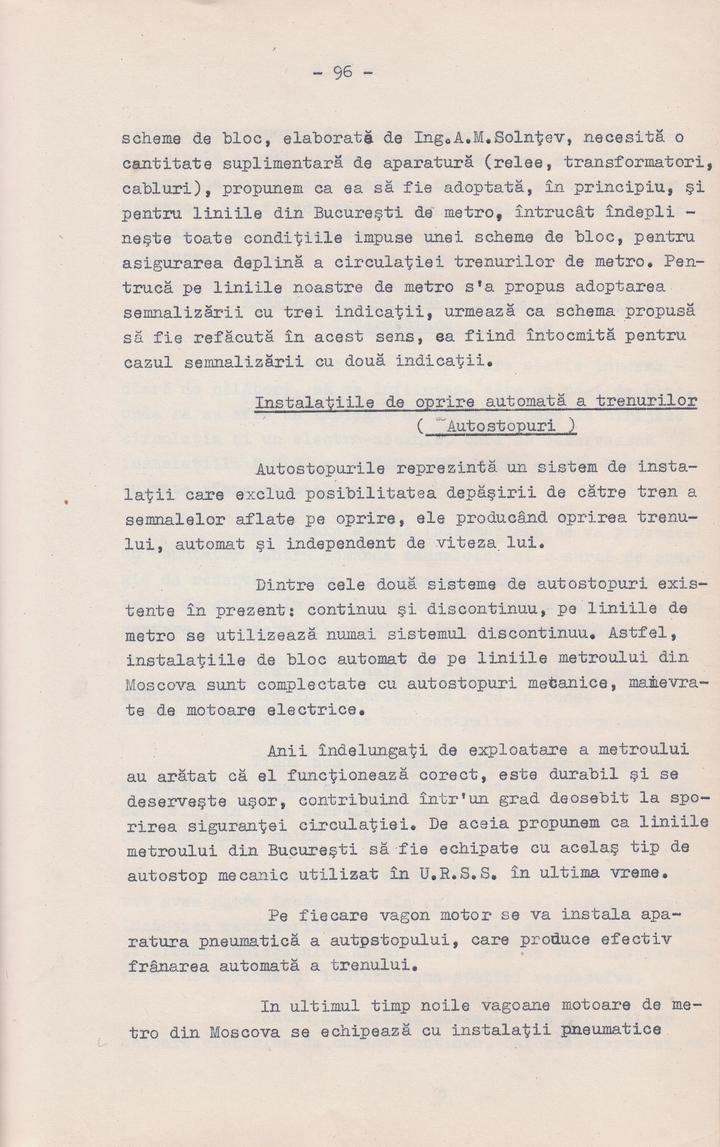 Memoriul Tehnico-Economic asupra constructiei metroului in orasul Bucuresti